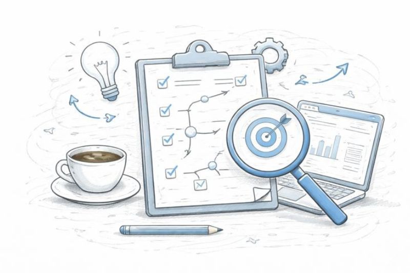 Start by understanding your customers’ language and search behavior. Interview recent customers about their search process. Then use keyword research tools to expand your seed keywords, analyze search volume data, assess keyword difficulty, and prioritize based on business value rather than search volume alone.