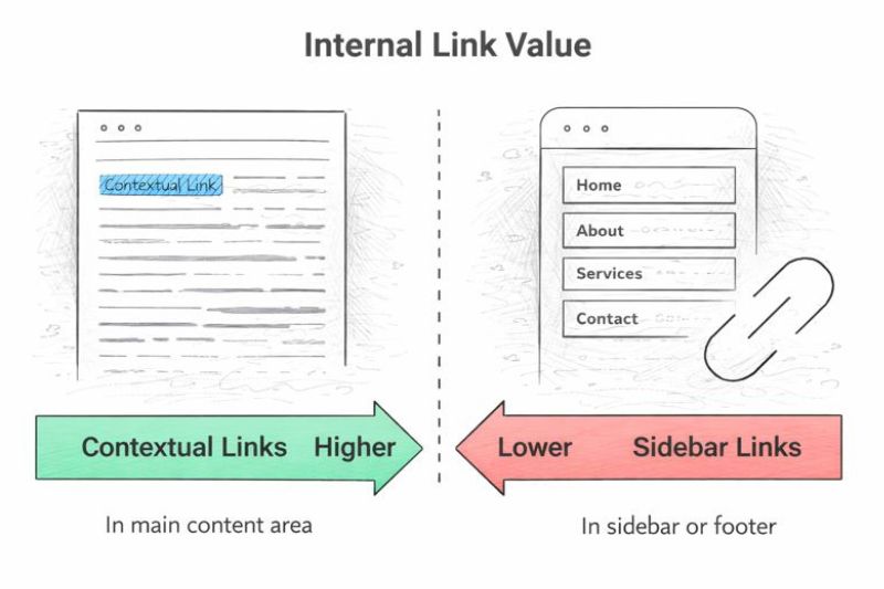 Link context – Search engines understand semantic relationships between linked pages. Random links between unrelated topics actually hurt more than they help.